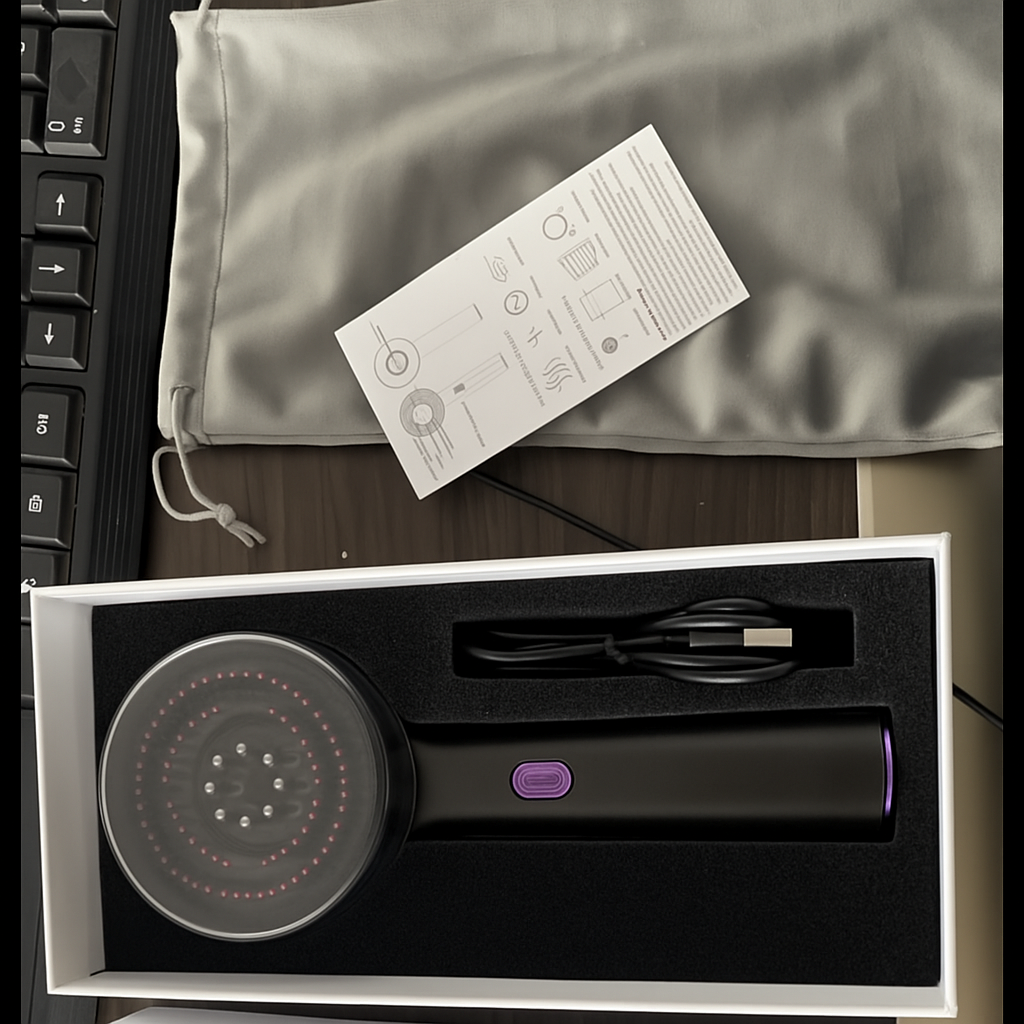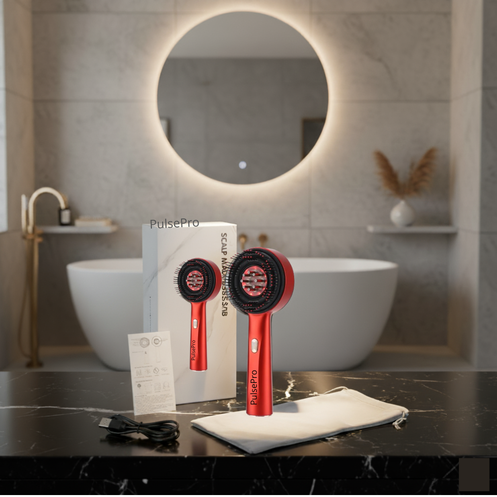 Geef je hoofdhuid nieuwe energie met de PulsePro– de perfecte combinatie van ontspanning en effectieve haarverzorging. Deze innovatieve massagekam stimuleert de doorbloeding van de hoofdhuid, vermindert spanning en ondersteunt gezonde haargroei.