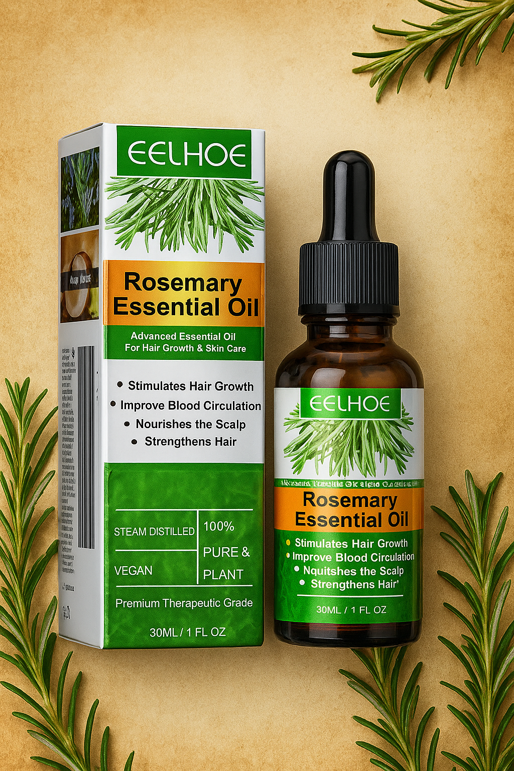 Rozemarijn staat bekend om zijn stimulerende werking: het verbetert de bloedcirculatie in de hoofdhuid, waardoor gezonde haargroei wordt geactiveerd.